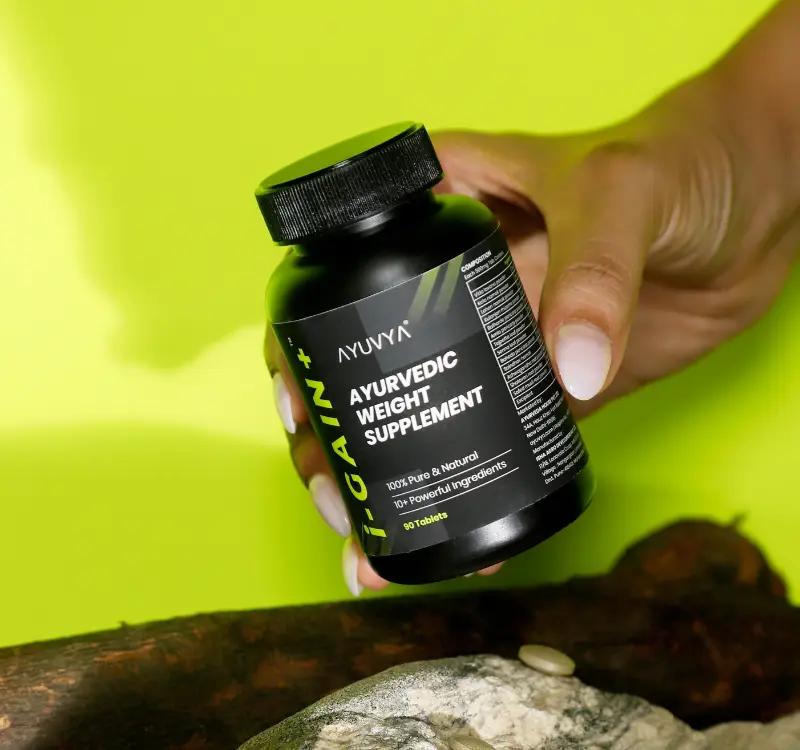 Ayuvya i-Gain+, a pure Ayurvedic supplement for weight gain, is crafted to enhance your physique while safeguarding your health.
