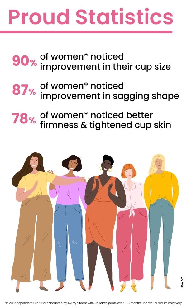 Herbs when paired with yoga & exercises like Dhanurasana,Bhujangasana, Ustrasana boost the process of increasing cup size and uplifting loose skin.