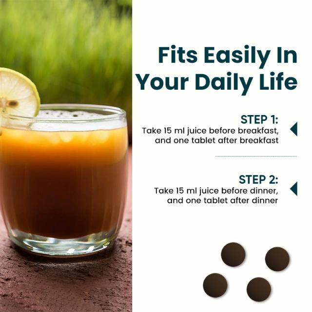 Take 15ml Juice Before Breakfast. Take one tablet in the morning after breakfast.