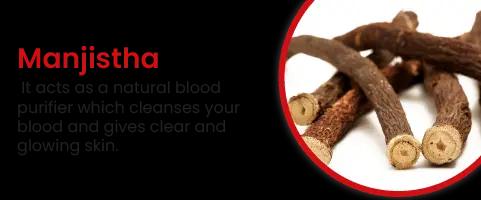 Manjistha extract, sariva extract, and 10 other herbs