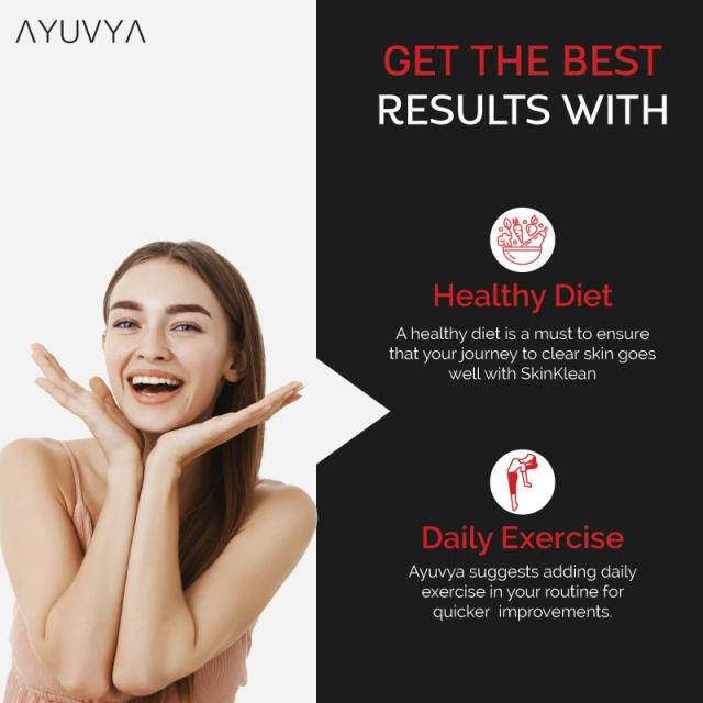 SkinKlean will be even more effective if you exercise daily as it will help in improving blood circulation leading to glowing and healthy skin.